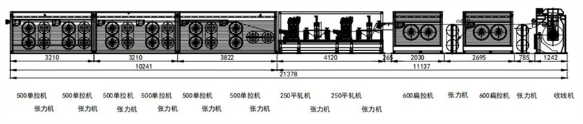 通过拉丝+平轧+扁拉,适用于生产带圆角的高精度铜扁线